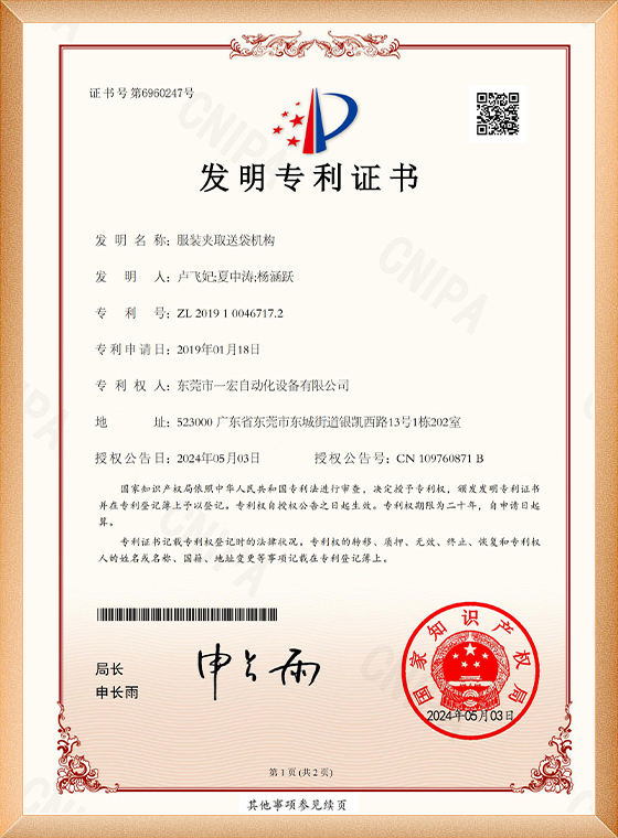 服装夹取送袋机构2019100467172-证书(1)_00