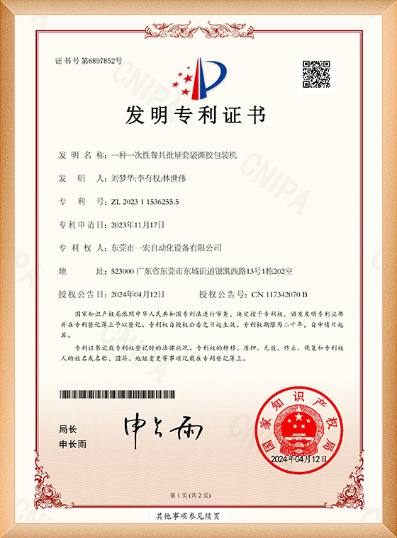 一种一次性餐具批量套袋撕胶包装机2023115362555-证书_00