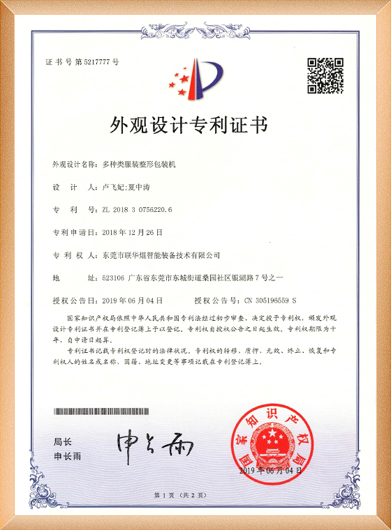 本上、一宏、双灯-2022304358637密封毛巾自动折叠包装机-外观设计专利证书_00